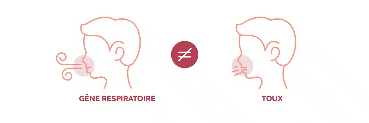 La gêne respiratoire est différente de la toux. Votre enfant peut être gêné pour respirer sans tousser ou tousser sans être gêné pour respirer.